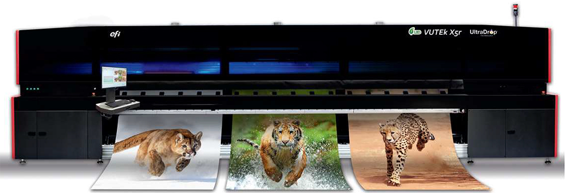 As a high-volume printer, you live or die on productivity, versatility and quality. Now you can take it to the max with EFI™ VUTEk 5r. It's the most technically advanced five-meter LED roll-to-roll printer on the market. One maxed-out platform that offers the highest image quality at the highest rated throughput speeds along with the highest range of options.